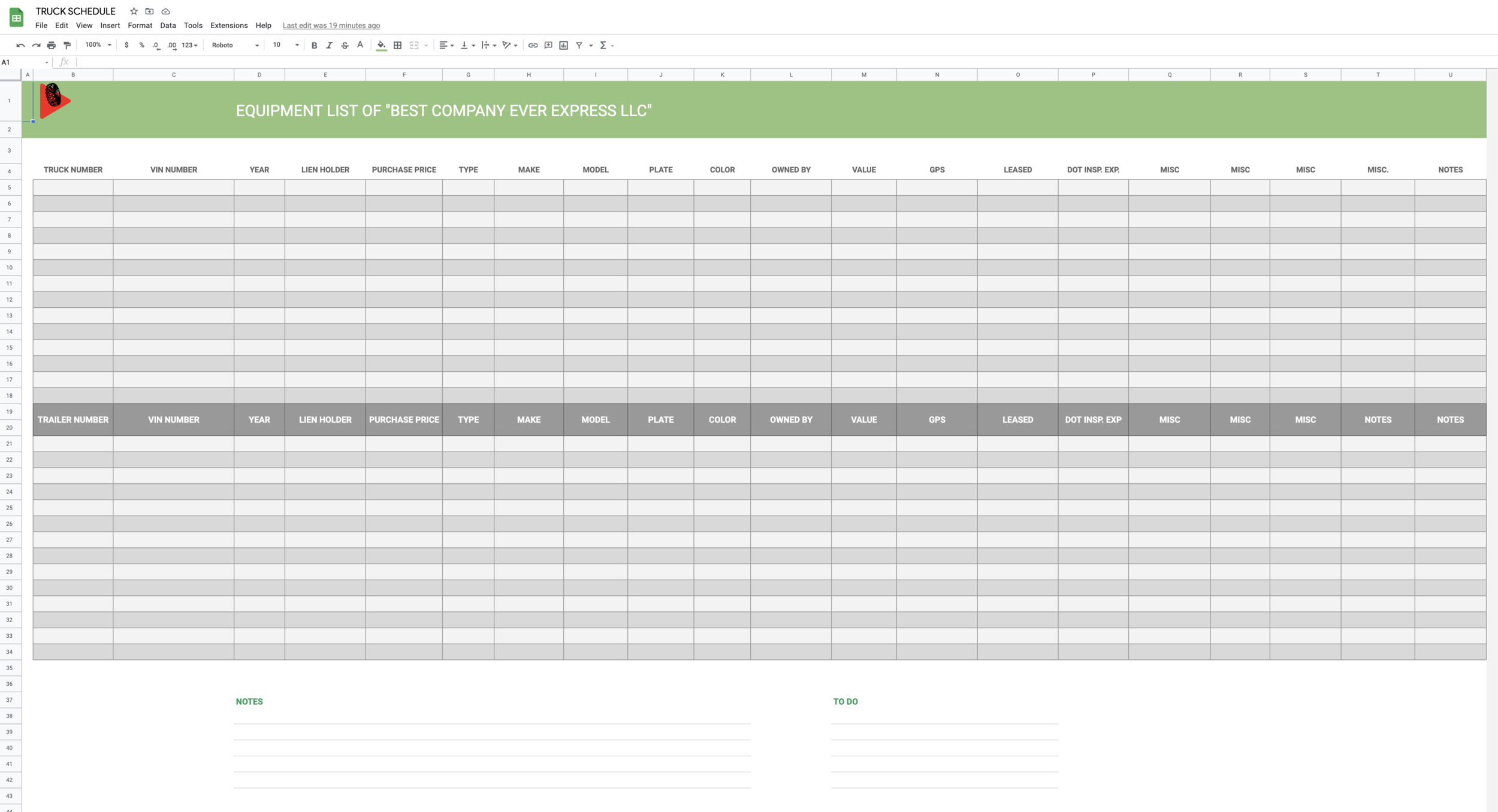 Keep track of your truck schedule, gross amounts, profits, equipment and driver information, broker contacts, and profits and expenses, and share it with your whole team. All in one spreadsheet. Simple, yet effective.